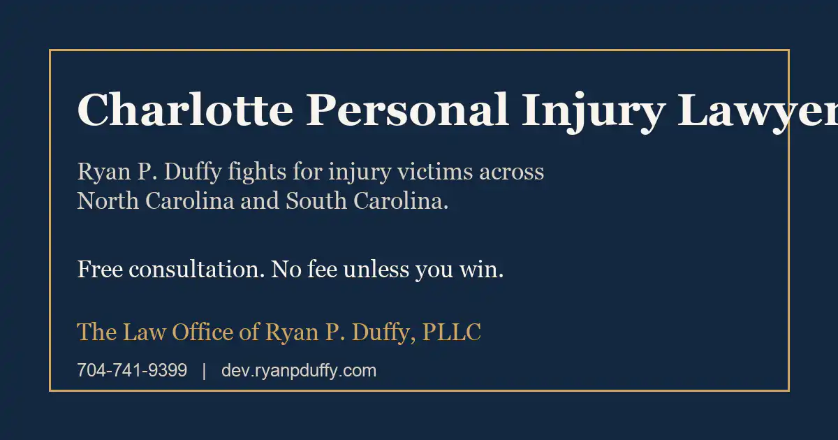 Licensed in North Carolina and South Carolina, the Law Office of Ryan P. Duffy represents injury victims throughout the Charlotte metro and surrounding communities.